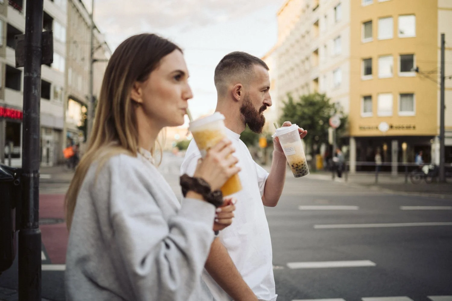 Nach ein paar Orten, einer sketchy Straßenbahn-Überquerung und einem Einkaufswagen sind wir zu Jennis Lieblings-Bubbletea-Laden gekommen. Sie hatten eigentlich gerade geschlossen. Weil sie cool sind, haben sie uns aber doch noch einen Bubble Tea gemacht!